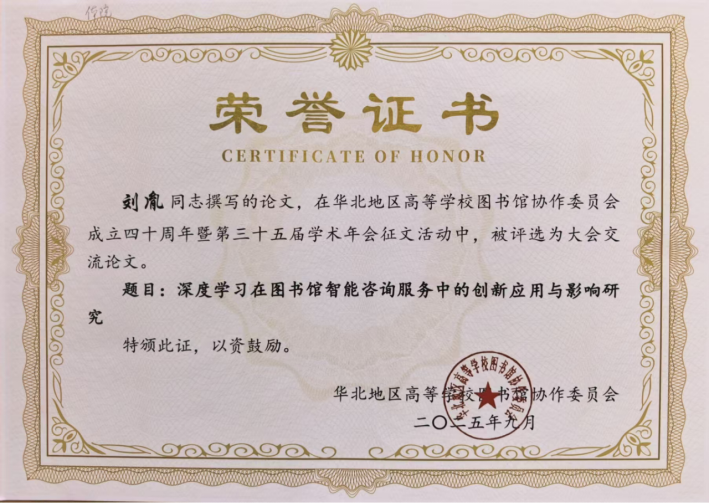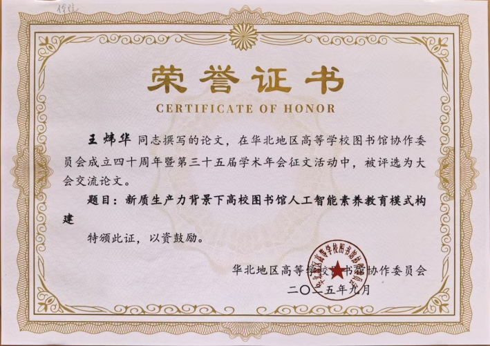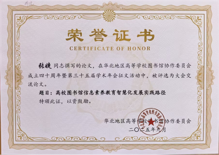 我校图书馆馆员在华北高校图协第三十五届学术年会中 荣获多项表彰