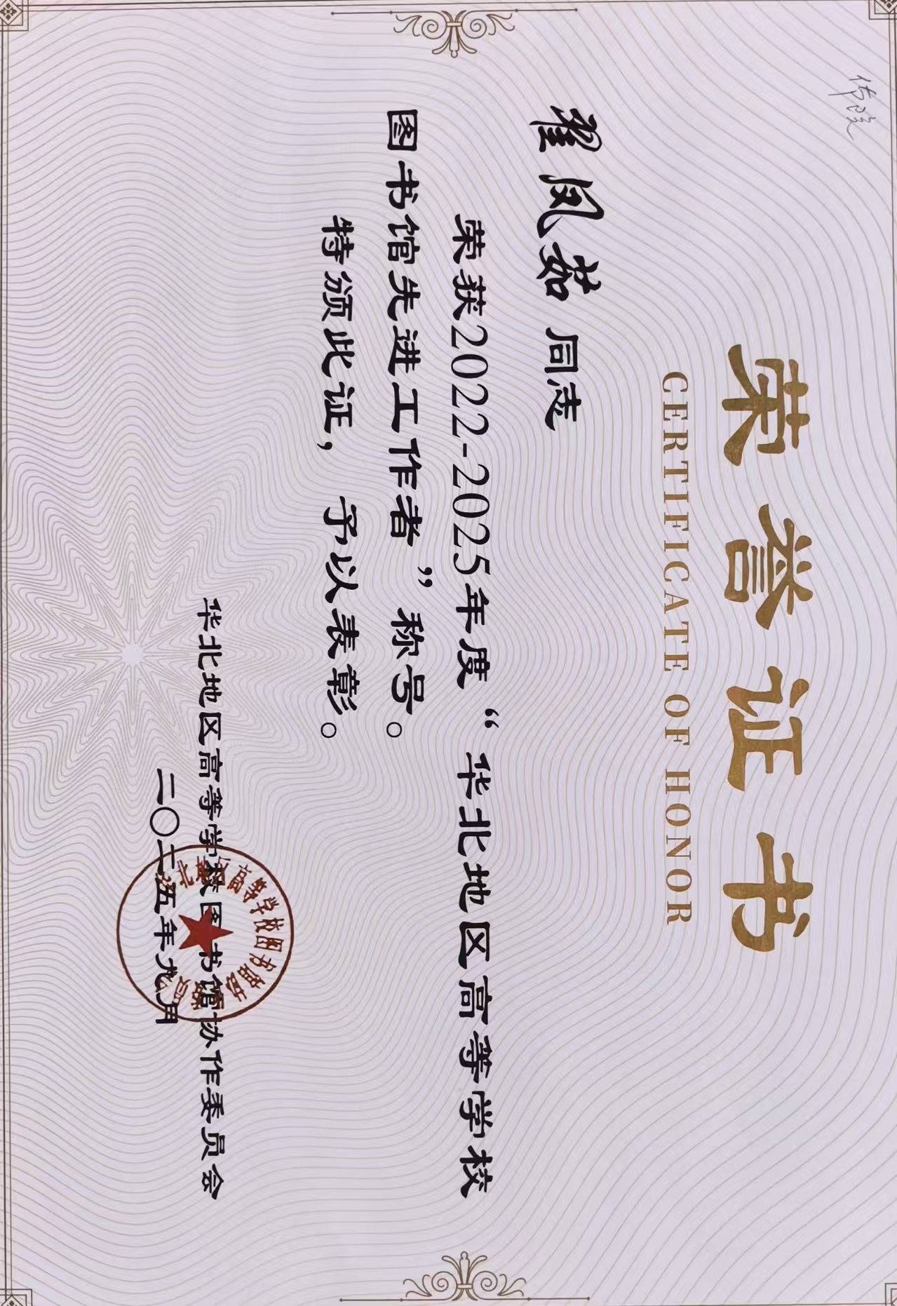 近日,华北地区高等学校图书馆协作委员会第三十五届学术年会在天津市召开,我校图书馆荣获“华北地区高等学校图书馆2022-2025年度先进集体”荣誉称号;我馆翟凤茹老师荣获2022-2025年度“华北地区高等学校图书馆先进工作者”荣誉称号。