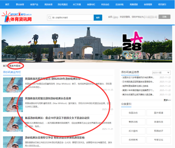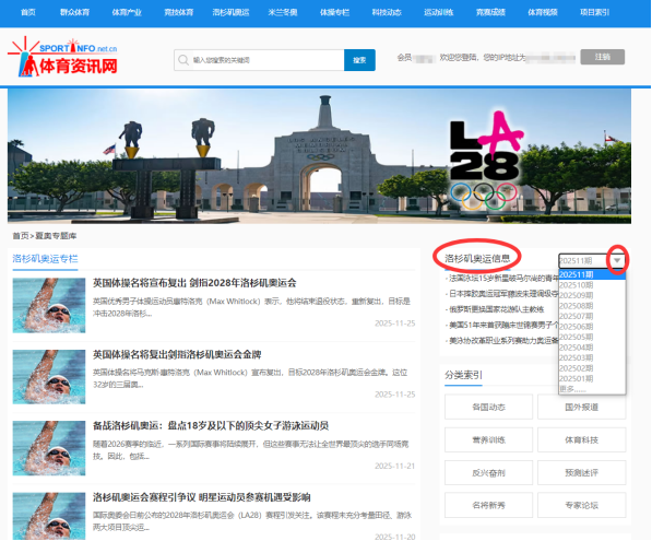 在数据库主页上方分类导航中,找到“洛杉矶奥运”和“米兰冬奥”栏目入口,分别进到“夏奥专题库”和“冬奥专题库”页面。