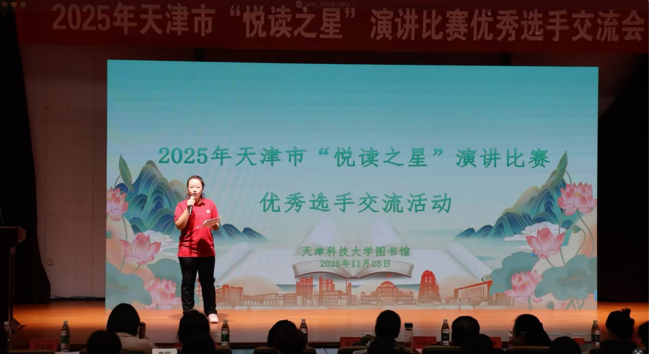 我校2023级新闻学专业贺佳怡同学作为2025年天津校园大学生“悦读之星”演讲比赛总决赛优秀选手受邀参加了该项活动,现场向与会人员展示了获奖作品和读书心得,分享了阅读给“体育人”带来的收获与转变,充分展现了我校学子的精神风貌。