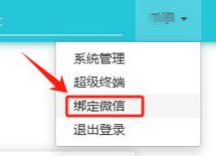 (2)登录成功后,在页面右上角点击名字,在下拉菜单中点击【绑定微信】。
